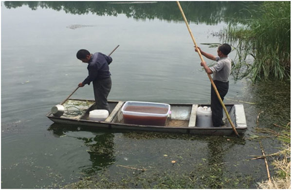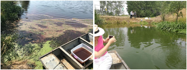 2017年5月11日南京蓋亞生物工程有限公司聯(lián)合成都大開應用技術(shù)研究所采用RhP體系技術(shù),針對船塘水體黑臭開展應急治理,歷經(jīng)近兩個月時間,船塘水質(zhì)已發(fā)生明顯變化:水體黑臭得以消除,尤其因工業(yè)污染產(chǎn)生的刺鼻性氣味已基本消除,水體透明度提升至40cm,水體富營養(yǎng)化程度大幅降低,水生態(tài)環(huán)境初步建立,食物鏈得以完善,水體中藻類種群發(fā)生改善,大量有益藻類和浮游動物開始生長,水色已轉(zhuǎn)變?yōu)榈G色。